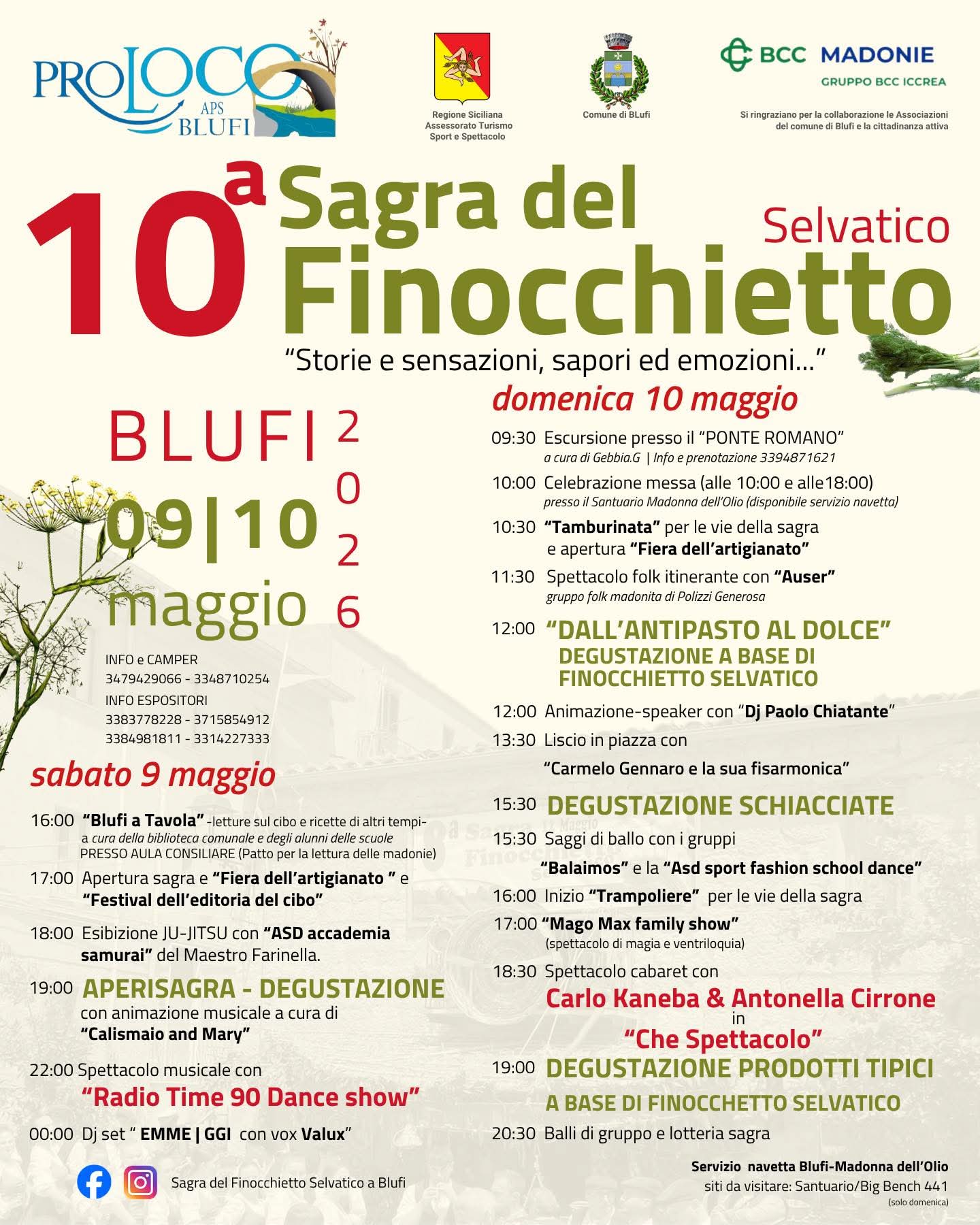 Blufi városában megrendezett Vadédeskömény Fesztivál (Sagra del Finocchietto Selvatico) a helyi ízek és hagyományok ünnepe, ahol a vadédesköményből készült ételek kerülnek a középpontba.